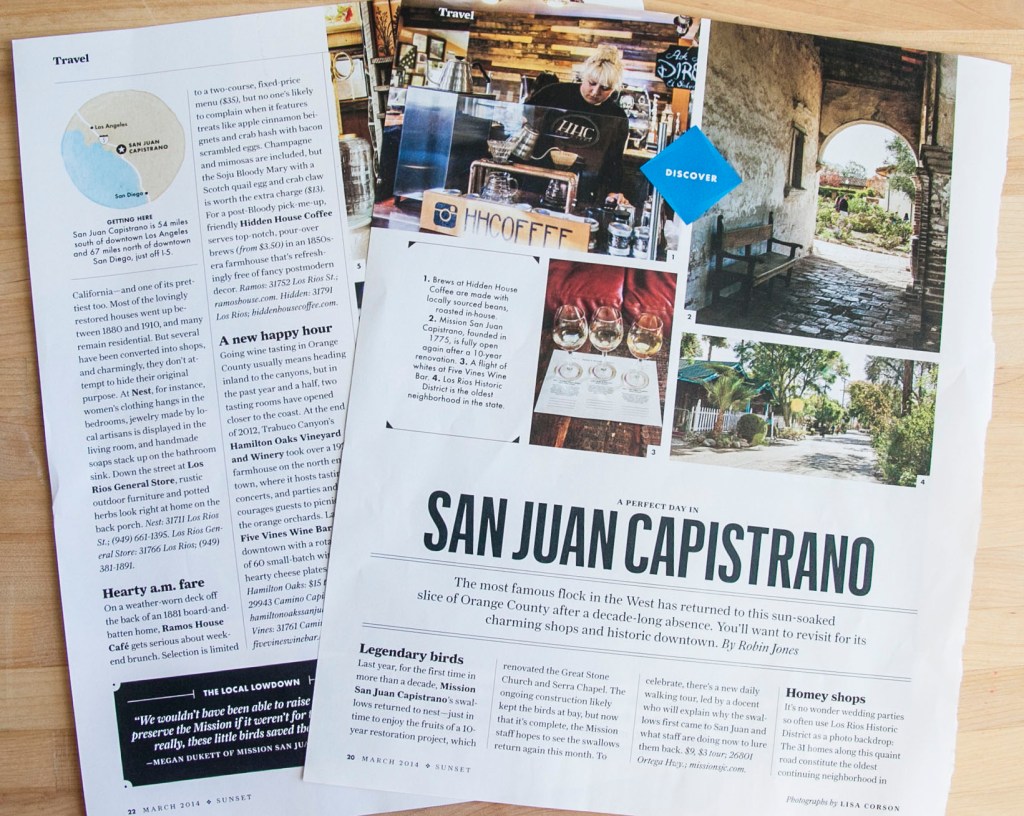A couple of Inspiration Saturdays ago I posted a Sunset Magazine article about visiting San Juan Capistrano. This weekend Emma and I bopped on down to San Juan just to have a stroll of the area Sunset had written about. It’s an area we frequent often but rarely as tourists. So, on Friday we pretended we were visiting the area and with camera in hand and our Sunset article we strolled around San Juan Capistrano.