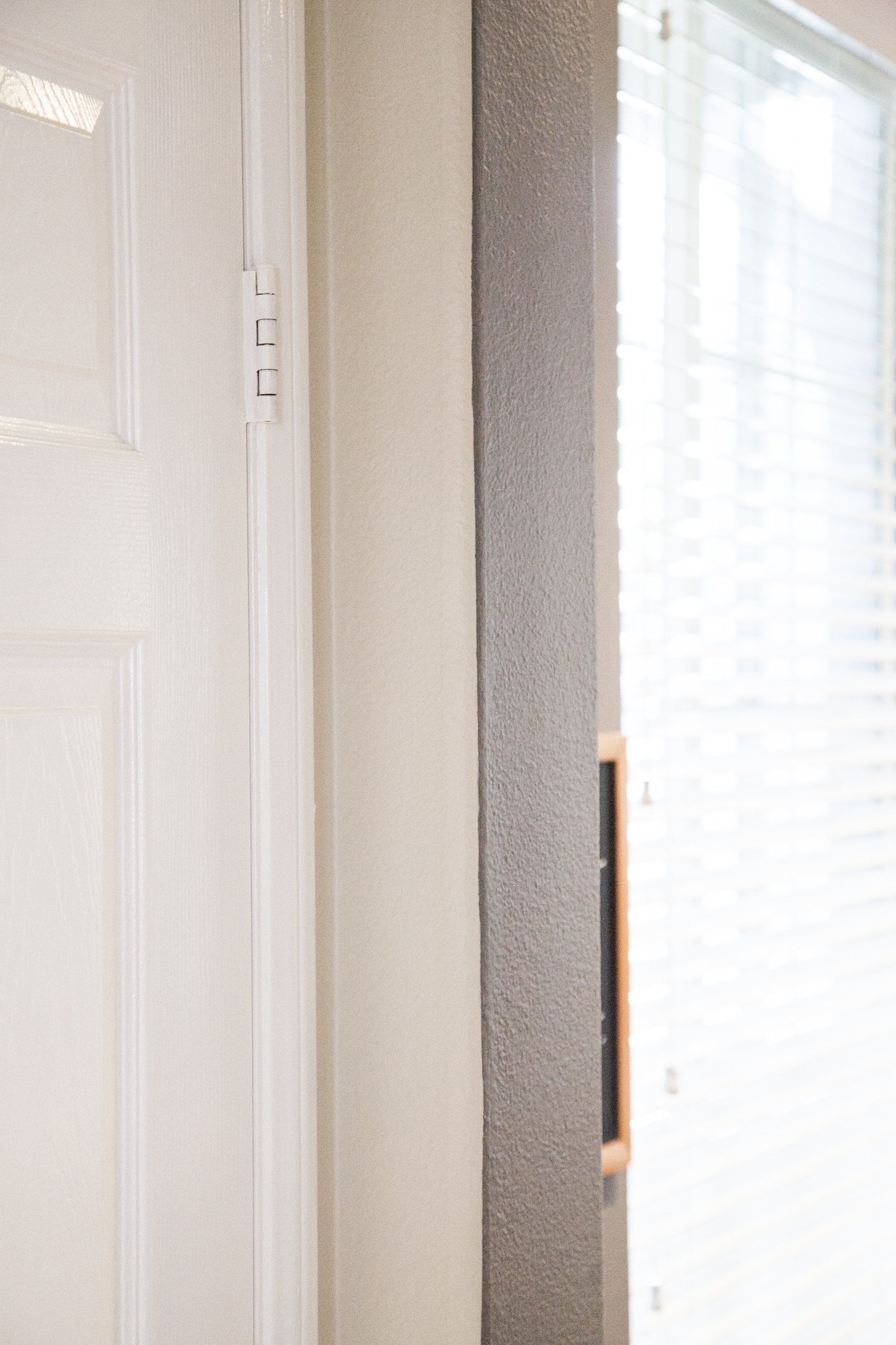 - Then, place your blue tape exactly where you want the new color to start. The tape will be going on the newly painted side of the corner. Rub the tape down as well as you can.
