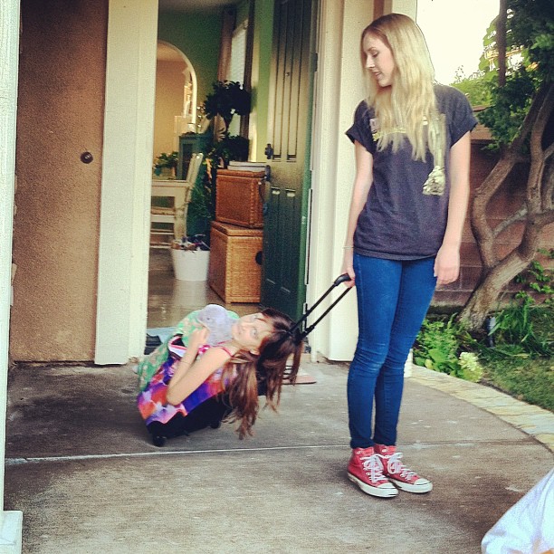 The backpack worked out so well they decided to put her into Amanda’s suitcase. So nice that Amanda could roll her little sister around the neighborhood for all the neighbors to see! My favorite part was when Amanda told me a neighbor said hi to her from across the street, and asked her if she was going somewhere… Then, that moment when the man realized a little girl was in the suitcase. The awkward silence as Amanda just kept walking on down the street. When I think about all the stuff I miss about my kids all living under the same roof, I miss the laughing most. I also miss Emma being small enough to fit in a suitcase.
